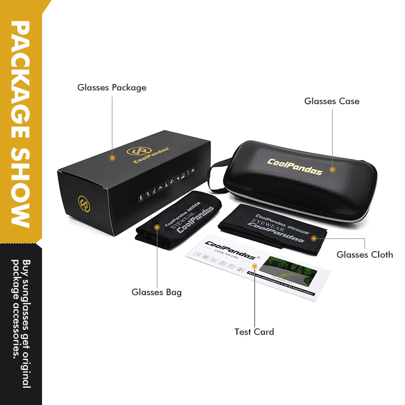 Marca: COOLPANDAS Origen: China continental Escenarios aplicables: al aire libre Género: hombres Tipo de estilo: sin límites Número de modelo: 8177HBT Tipo de artículo: GAFAS Tipo de producto: gafas de sol con protección solar Nombre del departamento: adulto Material del marco: aluminio y magnesio Tipo de elemento: deportes al aire libre Sustancia química de alta preocupación: ninguna Material de las lentes: policarbonato Atributo óptico de las lentes: UV400 Atributo óptico de las lentes: polarizado Atributo óptico de las lentes: fotocromático Altura de la lente: 38 mm Ancho de la lente: 65 mm Tipo de gafas: gafas de sol Certificación: CE Característica del marco: elegante, cómodo y no se raya fácilmente Atributo óptico de las lentes: 100% V400, antirreflectante, lentes polarizadoras HD Adecuado para la cara: cara redonda, cara larga, cara cuadrada, cara ovalada Ámbito de uso: conducción, pesca, fiesta, desfile de moda, exterior, deporte Paquete: gafas, estuche, bolsa, paño limpio, tarjeta de prueba polarizada Género/edades: hombres, mujeres